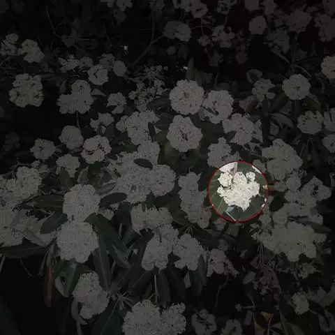 复伞房花序生于当年生的直立新枝顶端,花朵密集,密被短柔毛;花梗长4-6毫米;苞片披针形至线状披针形,下面微被柔毛;花直径4-7毫米;花萼外面有稀疏短柔毛,萼筒钟状,内面有短柔毛;萼片三角形,先端急尖,内面近先端有短柔毛;花瓣卵形至圆形,先端通常圆钝,长2.5-3.5毫米,宽2-3毫米,粉红色;雄蕊25-30,远较花瓣长;花盘圆环形,约有10个不整齐的裂片。