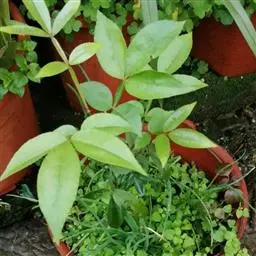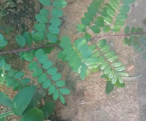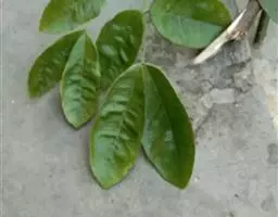 叶有小叶5-13片,叶轴常有甚狭窄的叶翼;小叶对生,无柄,卵形,椭圆形,稀披针形,位于叶轴顶部的较大,近基部的有时圆形,长2-7厘米,宽1-3.5厘米,叶缘有细裂齿,齿缝有油点。其余无或散生肉眼可见的油点,叶背基部中脉两侧有丛毛或小叶两面均被柔毛,中脉在叶面微凹陷,叶背干后常有红褐色斑纹。
