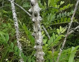花椒膏药病是花椒的一种常见病,其病原为担子菌亚门的隔担耳。担子果似膏药状,紧帖在花椒树枝干上。轻者使枝干生长不良,挂果少;重者导致枝干枯死。在很多地区,花椒枝干及整株枯死,挂果少,结果小都与膏药病有关。膏药病的发生与树龄、湿度及品种有关。据调查,花椒膏药病主要发生在荫蔽、潮湿的成年椒园;另外,该病发生与介壳虫危害有关,膏药病以介壳虫分泌的蜜露为营养,故介壳虫危害严重的椒园,膏药病发病严重