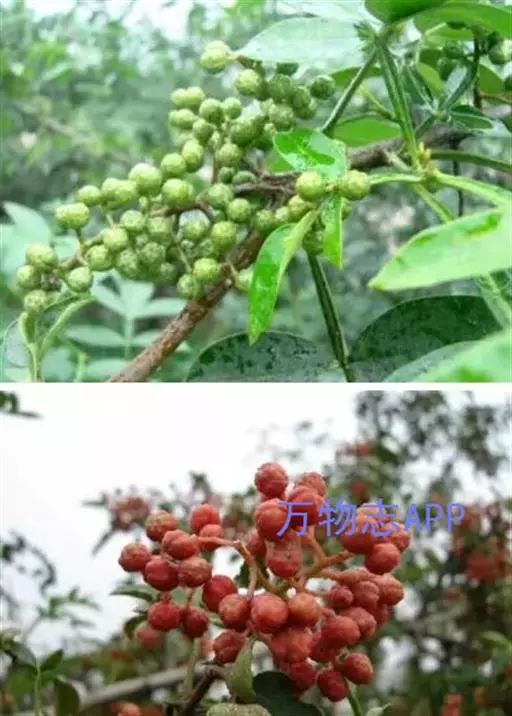 (二)成熟的外部特征:当花椒叶面出现油亮而富有光泽,果实颜色变红色或紫红色,果皮着生疣状突起油点明显,透明发亮,种子变黑,果皮易开裂,香味浓麻辣足时,选择晴天采摘。