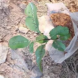 苗期管理:苗高4-5厘米时间苗定苗,保持苗距10-15厘米。苗木生长期间可于6-7月每亩分别施入人粪尿3000-4500kg,或化肥10-25kg,施肥要与灌水相结合,施后及时中耕除草。花椒苗最怕涝,雨季到来时,苗圃要作好防涝排水工作。1年生苗高70-100厘米,即可出圃造林。