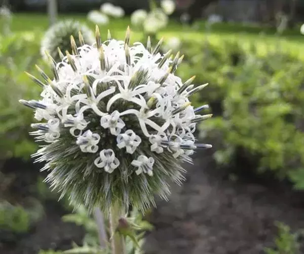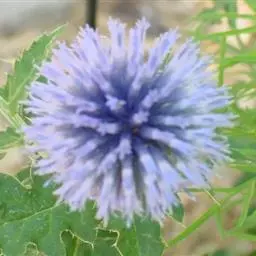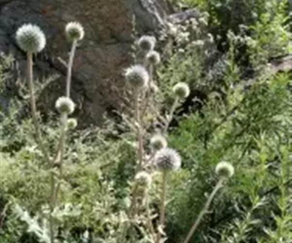 多年生草本,高30-60厘米。茎直立,基部有残存的纤维状撕裂的褐色叶柄,下部被稀疏的蛛丝状绵毛或无毛,向上及接复头状花序下部灰白色,被稠密或密厚的蛛丝状绵毛,不分枝或基部有1-2个短的花序分枝。基生叶与下部茎叶椭圆形、长椭圆形或披针状椭圆形,长15-20厘米,宽8-15厘米或更大,长达35厘米,宽达18厘米,通常有长叶柄,柄基扩大贴茎或半抱茎,二回羽状分裂,一回为深裂或几全裂,一回侧裂片4-8对,披针形、椭圆形、披针状椭圆形或宽卵形,中部侧裂片较大,向上向下渐小,二回为深裂或浅裂,二回裂片长椭圆形、斜三角形或披针形,顶端针刺状长渐尖,边缘少数三角形刺齿或通常无刺齿。中上部茎叶与基生叶及下部茎叶同形并近等样分裂。上部茎叶羽状半裂或浅裂,无柄,基部扩大抱茎。全部茎叶质地薄,纸质,两面异色,上面绿色,无毛或被稀疏蛛丝毛,下面灰白色,被密厚的蛛丝状绵毛。复头状花序单生茎顶或茎生2-3个复头状花序,直径3-5.5厘米。头状花序长1.9厘米。基毛白色,不等长,扁毛状,长约7毫米,长为总苞长度的2/5。总苞片14-17个,外层苞片稍长于基毛,线状倒披针形,上部菱形或椭圆形扩大,边缘有长缘毛,顶端短渐尖;中层倒披针形,长1-1.3厘米,自最宽处向上突然收窄成针刺状长渐尖,边缘有稀疏短缘毛;内层长椭圆形,长1.5厘米,上部边缘有短缘毛,顶端刺芒状渐尖。全部苞片外面无毛。小花蓝色,花冠裂片线形,花冠管上部有多数腺点。瘦果长7毫米,被稠密的顺向贴伏的淡黄色长直毛,遮盖冠毛。冠毛量杯状,长1.2毫米,冠毛膜片线形,边缘糙毛状,中部以下结合 花果期6-9月。