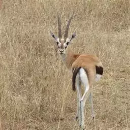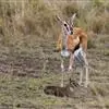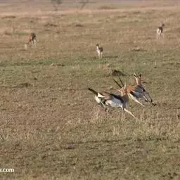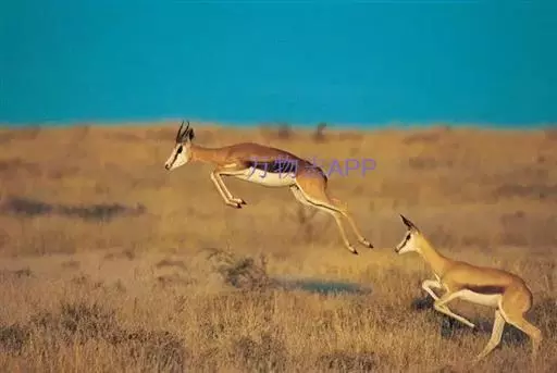 草丛中当所有跳羚的注意力都集中在角斗上时,狮子便有了难得的机会。狮子通常更喜欢吃长角羚一类较大的动物。但此时,使它动心的是角斗的双方。一只警觉的跳羚发出了警报。狮子明白,订餐被取消了。整个跳羚群腾跃起来。跳羚有一种与众不同的腾跳方式,似乎表明要抓住它们是何等不易。