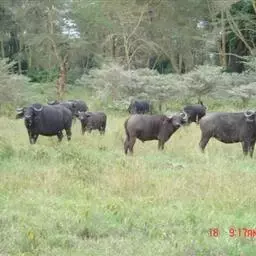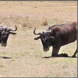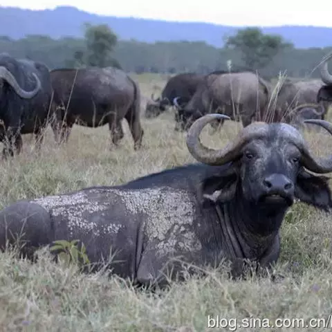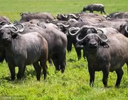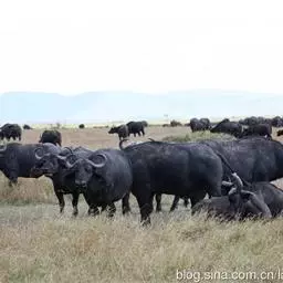 非洲野水牛:共有5个亚种。头体长2.1-3.4米,身高1-1.7米,体重300-900千克。胸膛宽…