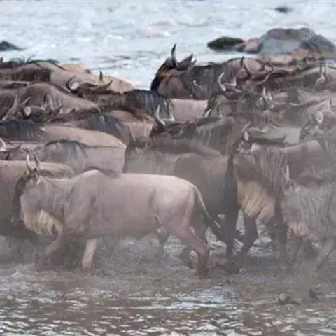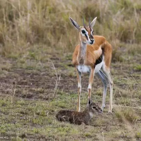 六个月的旱季过去了,雨季却姗姗来迟。令人渴望的暴风雨遥在远方。母跳羚把产期拖了拖,但再也不能耽搁了,它们纷纷开始产仔。即使捕食者就在周围,母羊们也依然镇定自若,产仔过程中它们甚至还在吃草,许多母羊都是边走边生。由于所有的小羊羔几乎都在同一星期和同一地点出生,这就给捕食者提供了超过自己食量的食物,因此,许多小羊羔都活了下来。胞衣的气味可能会暴露小羊羔,于是母羊把它吃掉。