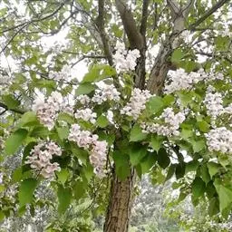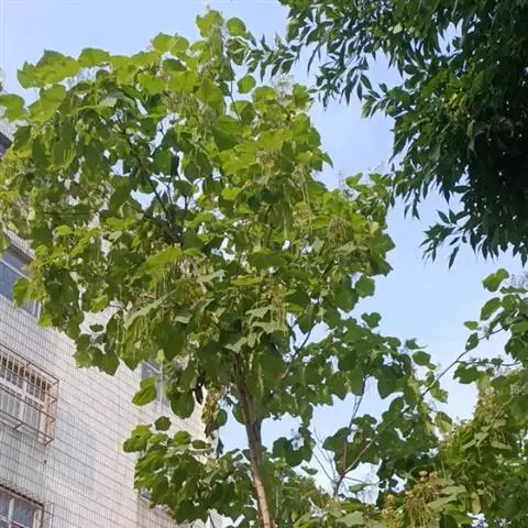 楸紫葳科小乔木,高8-12米。叶三角状卵形或卵状长圆形,宽达8厘米,顶端长渐尖,基部截形,…