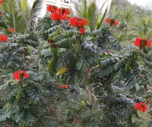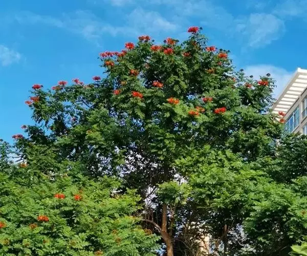 火焰树作为风景林地的配植,可以体现自然野趣。