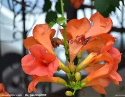 厚萼凌霄 Seem.)是紫葳科凌霄属植物,藤本,具气生根,长达10米。小叶9-11枚,椭圆形至卵状…