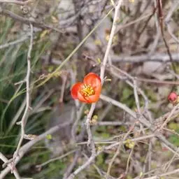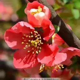 日本木瓜(学名:Chaenomeles japonica (Thunb.) Lindl.)是蔷薇科木瓜属植物,矮灌木,高约1米,枝条广开,有细刺;小枝粗糙,圆柱形,幼时具绒毛,紫红色,二年生枝条有疣状突起,黑褐色,无毛。叶片倒卵形、匙形至宽卵形,长3-5厘米,宽2-3厘米。花3-5朵簇生,花梗短或近于无梗,无毛;萼筒钟状,外面无毛。果实近球形,直径3-4毫米,黄色,萼片脱落。花期3-6月,果期8-10月。