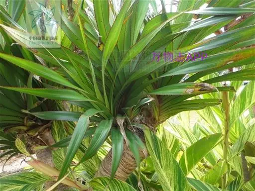 株高2.5-5米。常绿灌木或小乔木状,原产地可高达20米。单干或分支,具环状叶痕;干基常长出多数气生根,入土则成为支柱根。坚强的气生根可长成树干举离地面,气生根也可自树枝发生。叶硬革质,常螺旋状3-4列集生枝梢剑状长披针形,无叶柄;叶缘及叶背中肋有向上红色锐钩刺。 在同一个生长环境里,雌株的叶宽较雄株宽1厘米,即雌株叶宽4厘米,雄株叶宽3厘米。