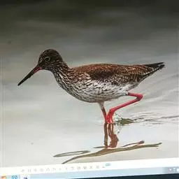 红脚鹬:体长28厘米,上体褐灰,下体白色,胸具褐色纵纹。飞行时腰部白色明显,次级飞羽具明显白色外缘。…
