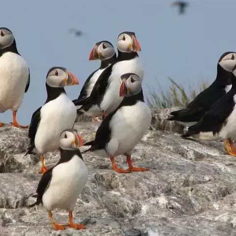 角海鹦:是鸻形目海雀科的鸟类,体重581-648克,体长约32厘米,翼展18-20厘米。是一种身体…