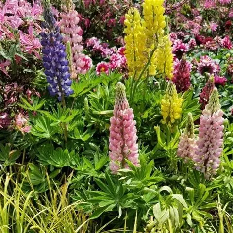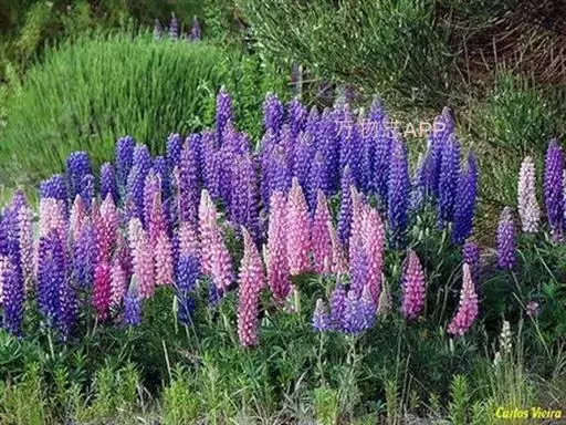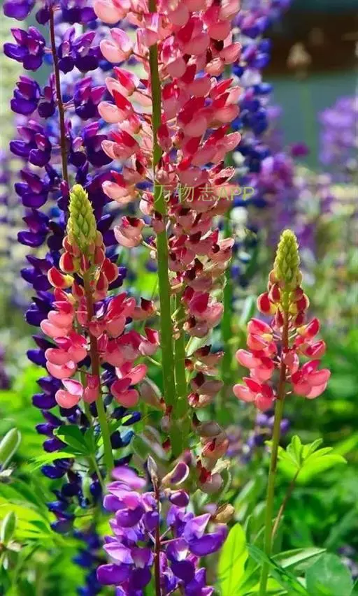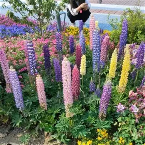 羽扇豆俗称鲁冰花,花序挺拔、丰硕,花色艳丽多彩,有白、红、蓝、紫等变化,而且花期长,可用于片植或在带状花坛群体配植,同时也是切花生产的好材料。