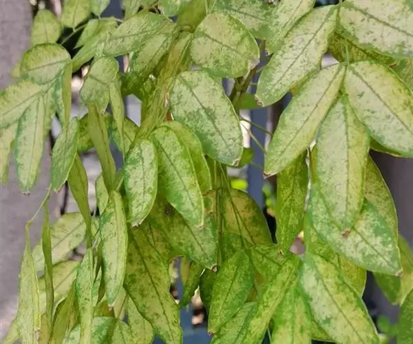 槐花皱缩而卷曲,花瓣多散落。完整者花萼钟状,黄绿色,先端5浅裂;花瓣5,黄色或黄白色,1片较大,近圆形,先端微凹,其余4片长圆形。雄蕊10,其中9个基部连合,花丝细长。雌蕊圆柱形,弯曲。体轻。气微,味微苦。