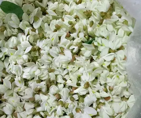 用于制作槐花荆芥饮、槐菊茶、大黄槐花蜜饮、马齿苋槐花粥、地榆槐花蜜饮、两地槐花粥和槐花清蒸鱼。在农村,槐花可入药,有去毒之效,还可包制成槐花饭,不仅如此,还可以包成槐花包子、槐花饺子、槐花煎饼、槐花炒鸡蛋、槐花粥。