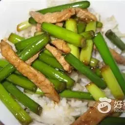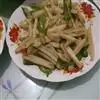 原料:鲜芥兰150克、香肠100克、生姜10克,花生油150克、盐10克、味精8克、白糖2克、湿生粉适量、麻油少许。