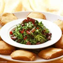 原料:香肠100克、荷兰豆100克、盐2克。