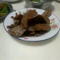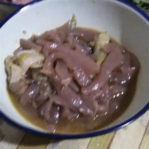 猪小肠(就是粉肠):反一面用盐洗净、最后用少许醋洗一遍(除腥)在反过来备用。