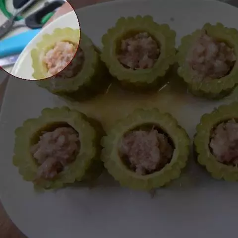 材料:两个蛋,少许盐,凉水,少许蒸鱼豉油,香油,煮熟的香肠切成碎末