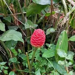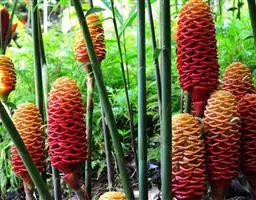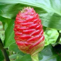 红球姜(学名:Zingiber zerumbet (L.) Smith)是姜科姜属多年生草本植物,根茎块状,株高可达2米。叶片披针形至长圆状披针形,无柄或短柄;总花梗长可达30厘米,花序球果状,顶端钝,苞片覆瓦状排列,紧密,近圆形,初时淡绿色,后变红色,边缘膜质,花萼膜质,花冠管纤细,裂片披针形,淡黄色,唇瓣淡黄色,侧裂片倒卵形,蒴果椭圆形,种子黑色。7-9月开花,10月结果。