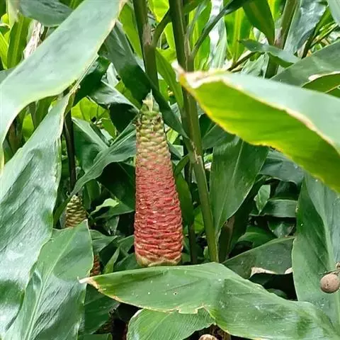 珊瑚姜是姜科、姜属植物。株高近1米。叶片长圆状披针形或披针形,长20-30厘米,宽4-6厘米,…