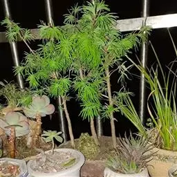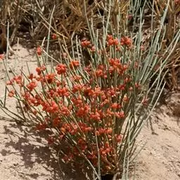 高达1米,木质茎粗长,直立,稀部分匍匐状,基部径达1-1.5厘米,中部茎枝一般径3-4毫米;小枝细,径约1毫米,节间短,长1-3.5厘米,多为1:5-2.5厘米,纵槽纹细浅不明显,常被白粉呈蓝绿色或灰绿色。