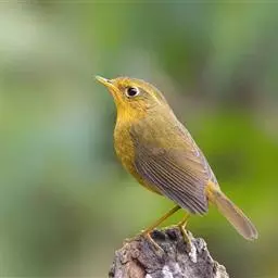 红尾歌鸲(学名:Luscinia sibilans):体长13-15厘米。上体橄榄褐色。尾羽棕栗色,眼先和颊黄褐色,眼周淡黄褐色。下体颏、喉污灰白色,微沾皮黄色,胸部具橄榄色扇贝形纹,两胁橄榄灰白色,腹部和尾下覆羽与颏、喉同。尾部棕色。虹膜褐色;嘴黑色;脚粉褐色。