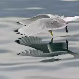 海鸥(学名:Larus canus)是一种中等体型的鸥。体长38-44厘米,翼展106-125厘米,体重300-500克,寿命24年。 腿及无斑环的细嘴绿黄色,白尾,初级飞羽羽尖白色,具大块的白色翼镜。冬季头及颈散见褐色细纹,有时嘴尖有黑色。海鸥身姿健美,惹人喜爱,其身体下部的羽毛就像雪一样晶莹洁白。