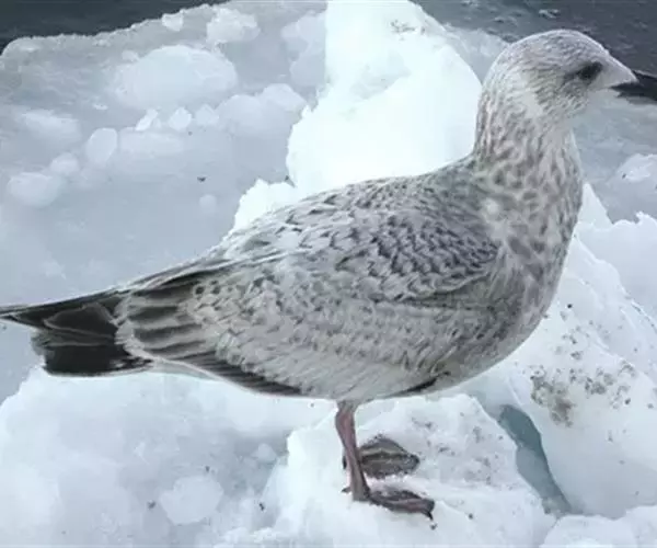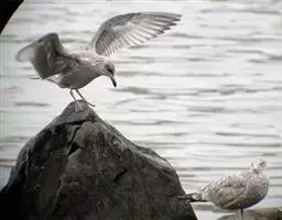 灰翅鸥,夏羽头、颈、腰、尾白色;肩、背和翅上覆羽鸽灰色。冬羽和夏羽相似,但头和颈具淡褐色纵纹,有时…