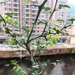 小乔木。枝通常有粗长刺,新梢及嫩叶柄常被疏短毛。叶厚纸质,翼叶倒卵状椭圆形,长1-2.5厘米,宽0.4-1.5厘米,顶部圆或钝,向基部渐狭楔尖,叶片卵形或披针形,大的长达8厘米,宽4厘米,小的长2.5厘米,宽约1厘米,顶部渐狭尖或短尖,常钝头且有凹口,基部圆或钝,叶缘上平段有细裂齿,稀近于全缘。花单生于叶腋,有下垂性,花梗短;花萼杯状,5-4裂,裂片阔卵形,端尖;花瓣白色,有时背面淡紫红色,长1-1.3厘米;雄蕊20-25枚;花柱长约为子房高的2倍,柱头几与子房等大。