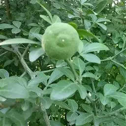 果扁圆或近似梨形,大小不一,大的径达8厘米,小的约4厘米,果顶有环状突起及浅放射沟,蒂部有时也有放射沟果皮祖糙,凹点均匀,油胞大,皮厚2-4毫米,淡红色,较易剥离,瓢囊9-11瓣,囊壁厚而韧,果肉淡黄白色,味甚酸,常有苦味或异味;种子多达40粒,阔卵形,饱满,平滑,子叶乳白色,单或多胚。花期4-5月,果期10-11月。