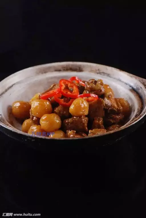 特色:成菜整齐,色泽棕红,肉质松软,板栗清酥