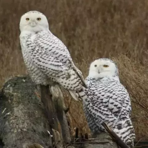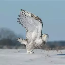 雪鸮(学名:Bubo scandiaca)是鸱鸮科的一种大型猫头鹰,头圆而小,面盘不显著,没有耳羽簇。嘴的基部长满了刚毛一样的须状羽,几乎把嘴全部遮住。虹膜金黄色,嘴铅灰色或角褐色,爪基灰色,末端黑色。它的羽色非常美丽,通体为雪白色,也有的时候布满暗色的横斑。