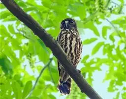 雌鸟和雄鸟相似,通体亦为白色,但头部有褐色斑点,背有暗色横斑,腰具成对褐色斑点,胸腹和两胁亦具暗色横斑。尾具3-5对褐色横斑。其余似雄鸟。幼鸟和雌鸟相似,而且横斑更显著。