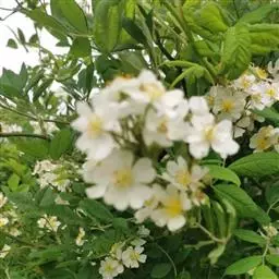 峨眉蔷薇,是蔷薇科蔷薇属直立灌木植物。峨眉蔷薇的小枝无刺或有扁而基部膨大皮刺;小叶长圆形或椭圆状长圆形,无毛;叶轴和叶柄有散生小皮刺,离生部分三角状卵形,边缘有齿或全缘;花单生叶腋,萼片披针形,全缘;花瓣白色,倒三角状卵形;蔷薇果倒卵圆形或梨形,熟时亮红色,果柄肥大,宿萼直立;花期为5-6月,果期为7-9月。峨眉蔷薇以产地命名。峨眉蔷薇产于中国多地,生于山坡、山脚下或灌丛中。峨眉蔷薇耐干旱,耐瘠薄,对土壤要求不严,在土层深厚、疏松、肥沃湿润且排水通畅的土壤中生长更好。峨眉蔷薇的繁殖方式为播种、扦插、压条。峨眉蔷薇的果实成熟时味甜,可鲜食,也可酿酒,晒干磨粉掺入面粉可作食品,其果实中含有糖及维生素等。峨眉蔷薇的果实不仅可以食用,还可入药,有止血、止痢、涩精之效。除此之外,峨眉蓄薇根皮含鞣质,可提制烤胶。
