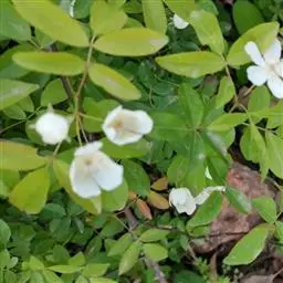 常绿或半常绿攀援灌木,有长匍匐枝,枝粗壮,无毛,有散生而粗短钩状皮刺。小叶5-9,连叶柄长5-10厘米;小叶片椭圆形、卵形或长圆卵形,长2-7厘米,宽1.5-3厘米,先端急尖或渐尖,稀尾状渐尖,基部楔形或近圆形,边缘有紧贴的锐锯齿,两面无毛,革质;托叶大部贴生于叶柄,无毛,边缘或仅在基部有腺,顶端小叶片有长柄,总叶柄和小叶柄有稀疏小皮刺和腺毛。花单生或2-3朵,直径5-8厘米;花梗长2-3厘米,无毛或有腺毛;萼片全缘,稀有少数羽状裂片,披针形,先端长渐尖,外面无毛,内面密被长柔毛;花瓣芳香,白色或带粉红色,倒卵形;心皮多数,被毛;花柱离生,伸出花托口外,约与雄蕊等长。果实呈压扁的球形,稀梨形,外面无毛,果梗短。花期6-9月。