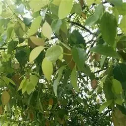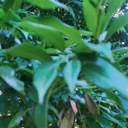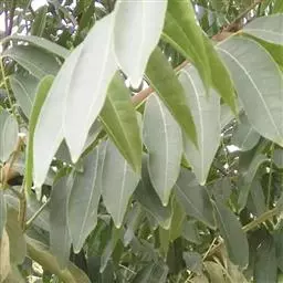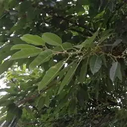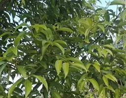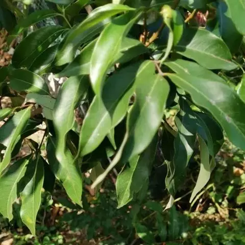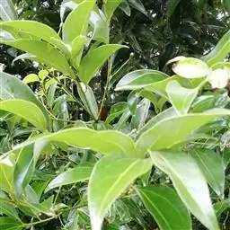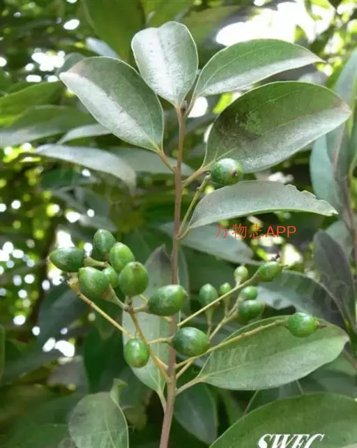 钝叶樟(Cinnamomum bejolghota (Buch.-Ham.) Sweet):又名钝叶桂、假桂皮、土桂皮、青樟木、大叶山桂、香桂楠,樟科樟属小至大乔木,高5-25米,胸径达30厘米;树皮青绿色,有香气。枝条常对生,粗壮, 小枝圆柱形或钝四棱形,干时红褐色,初时被微柔毛,后变无毛。芽小,卵珠形,芽鳞密被 绢状毛。叶近对生,椭圆状长圆形,长12-30厘米,宽4-9厘米,先端钝、急尖或渐尖,基部近圆形或渐狭,硬革质,上面绿色,光亮,下面淡绿或黄绿色,多少带白色,两面极无毛,三出脉或离基三出脉。花期3-4月,果期5-7月。