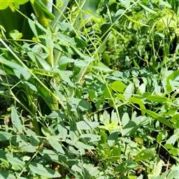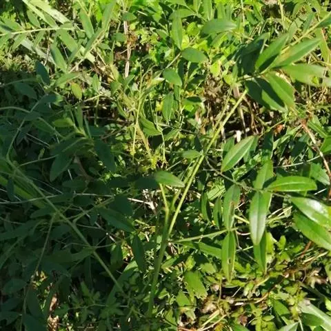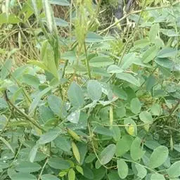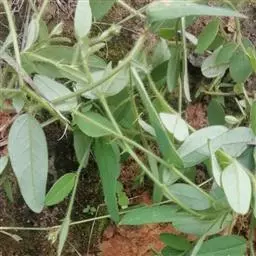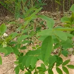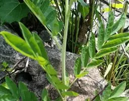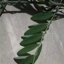 草本,或基部木质化成亚灌木状,高约1米。枝被白色或淡灰白色长柔毛或贴伏柔毛。羽状复叶;叶柄长1-2厘米;托叶着生于小叶柄的侧面,钻状,长约5毫米,常早落;小叶7-13对,对生或近互生,纸质,披针状长圆形或椭圆状长圆形,长15-30毫米,宽约10毫米,先端钝圆或急尖,常具小尖头,基部宽楔形或圆形,上面被疏柔毛,下面毛被较密,中脉上面常凹陷,下面隆起,侧脉不明显。