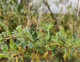 苦豆子(学名:Sophora alopecuroides L.)是豆科,槐属草本或基部木质化成亚灌木状植物,高可达1米。羽状复叶;托叶着生于小叶柄的侧面,钻状,小叶对生或近互生,纸质,叶片披针状长圆形或椭圆状长圆形,侧脉不明显。总状花序顶生;花多数,密生;苞片似托叶,脱落;花萼斜钟状,花冠白色或淡黄色,旗瓣形状多变,翼瓣常单侧生,龙骨瓣与翼瓣相似,先端明显具突尖,背部明显呈龙骨状盖叠,柄纤细,花丝不同程度连合,柱头圆点状,荚果串珠状,种子卵球形,稍扁,5-6月开花,8-10月结果。