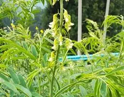 荚果串珠状,长8-13厘米,直,具多数种子;种子卵球形,稍扁,褐色或黄褐色。花期5-6月,果期8-10月。