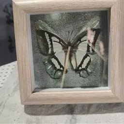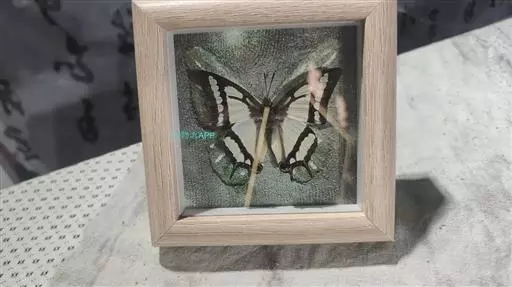 翅淡绿色,前后翅外缘有黑色宽带,前翅黑带中有淡绿色斑列,后翅黑带间为淡绿色带。后翅两尾呈剪形突出,黑褐色,二尾蛱蝶前后翅斑纹酷似我国古代军事上常用的弓箭图形,又称为“弓箭蝶”。