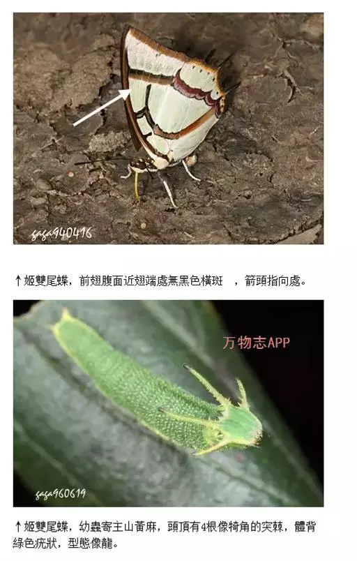 二尾蛱蝶是一种飞行迅速,有着两对尾突的美丽蝶种。它们多活动于林间的开阔地及山谷间,雄成虫特别喜欢吸食动物的粪便,常可在厕所见到它们。