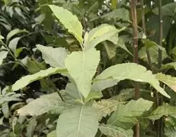 扁桃斑鸠菊(学名:Vernonia amygdalina Del.):是一种2-5米的灌木或小乔木,树皮粗糙。叶绿色椭圆形,长达20厘米。头状花序中等大,排列成伞房状或总状,数个密集,具同型的两性花,花多数。瘦果圆柱状或陀螺状,具棱或具肋,顶端截形,基部常具胼胝质,被短毛,常具腺;冠毛通常2层,稀1层,内层细长,糙毛状,脱落或宿存,外层极短,刚毛状。