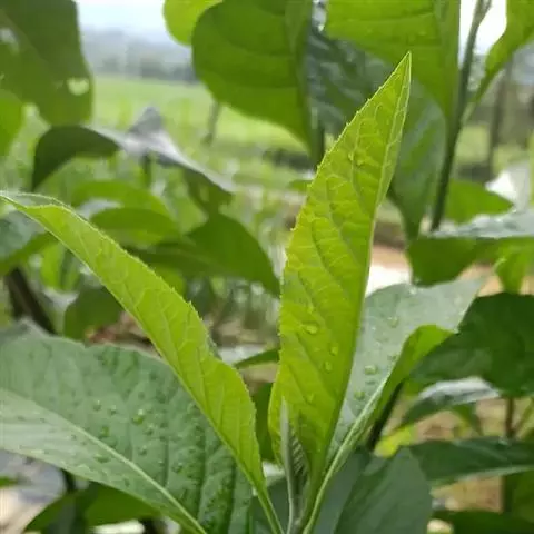 南非叶在中国东南沿海地区被称为“将军叶”,是由于它生长能力强,四季皆宜种;俗称:苦茶。南非叶为菊科斑鸠菊属植物扁桃斑鸠菊的叶。扁桃斑鸠菊原产于热带非洲,在尼日利亚等地被当做一种蔬菜。
