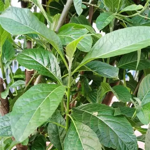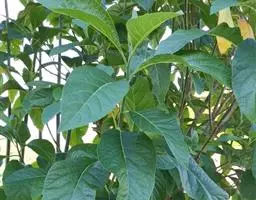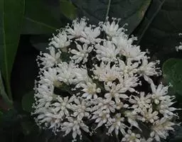扁桃斑鸠菊 扁桃斑鸠菊是一种2-5米的灌木或小乔木,树皮粗糙。叶绿色椭圆形,长达20厘米,互生,大而宽,顶部尖。不下延。通常具柄,叶柄直径约6毫米,全缘,稀具近基三出脉两面或下面常具腺。