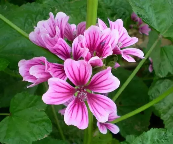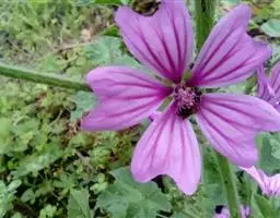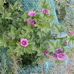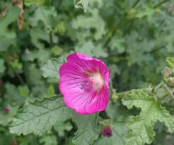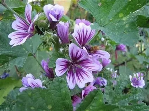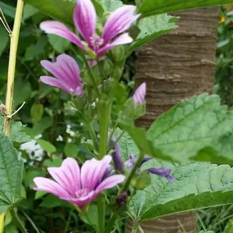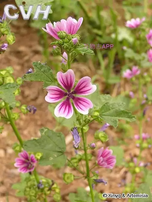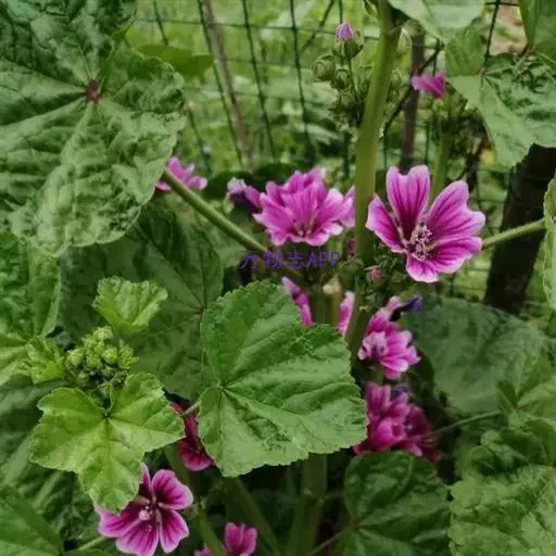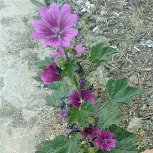 锦葵(学名:Malva sinensis Cavan.):二年生或多年生直立草本,高50-90厘米,分枝多,疏被粗毛。叶圆心形或肾形,具5-7圆齿状钝裂片,两面均无毛或仅脉上疏被短糙伏毛。花3-11朵簇生,小苞片3,长圆形疏被柔毛;花紫红色或白色,直径3.5-4厘米,花瓣5,匙形,长2厘米,先端微缺,爪具髯毛。果扁圆形,分果爿9-11,肾形,被柔毛;种子黑褐色,肾形,长2毫米。花期5-10月。