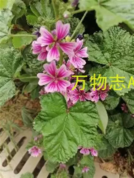 锦葵,古名"荍",始载于《诗经·陈风》。《尔雅·释草》:"荍,蚍杯。"(蚍杯,或作芘芣)陆玑《诗疏》云:"荍,一名荆葵。"《尔雅翼》进一步明确:"荍,荆葵也……一名锦葵。"《植物名实图考》收载于卷三蔬类,云:"锦葵……今荆葵也,似葵紫色……小草多华少叶,叶又翘起……华紫绿色,可食,微苦。按花亦有白色者,逐节舒葩,人或谓之硅节花。",其原植物应属此种。