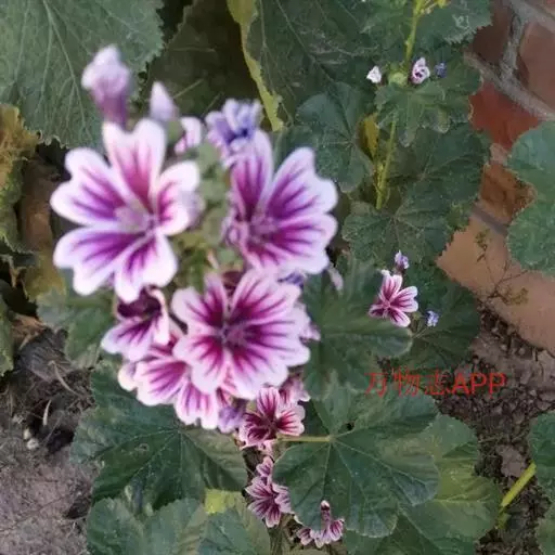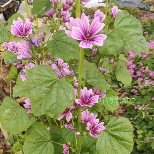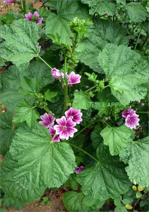 锦葵是二年生或多年生直立草本植物,高50-90厘米,分枝多,疏被粗毛。叶圆心形或肾形,具5-7圆齿状钝裂片,长5-12厘米,宽几相等,基部近心形至圆形,边缘具圆锯齿,两面均无毛或仅脉上疏被短糙伏毛;叶柄长4-8厘米,近无毛,但上面槽内被长硬毛;托叶偏斜,卵形,具锯齿,先端渐尖。