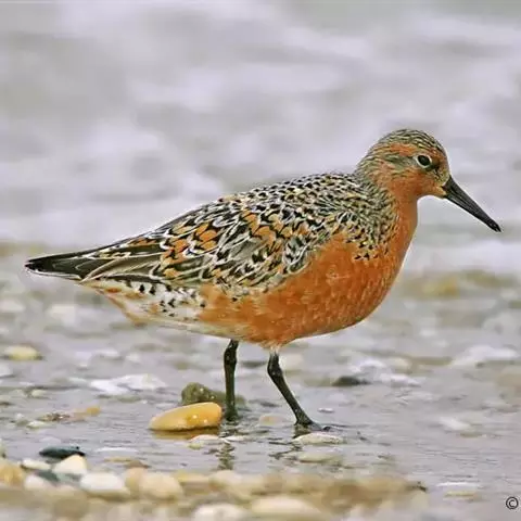 红腹滨鹬,是鹬科、滨鹬属的小型涉禽,体长23-25厘米,嘴较短而直、黑色,脚亦甚短、绿色。体较粗胖。…