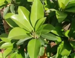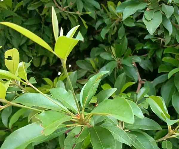 乔木,高15-20米(栽培者常较矮,且常呈灌木状),小枝茶褐色,具明显的叶痕。叶互生,密聚于枝顶,革质,长圆形或卵状椭圆形,长6-19厘米,宽2.5-4厘米,先端急尖或钝,基部楔形,全缘或稀微波状,两面无毛,具光泽,中脉在上面凹入,下面很凸起,侧脉纤细,多且相互平行,网脉极细密,两面均不明显;叶柄长1.5-3厘米。